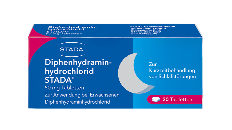 Diphenhydraminhydrochlorid STADA® ist ein schlaffördernder Wirkstoff das sich in der Kurzzeitbehandlung von Schlafstörungen bewährt hat. Das Mittel hilft, schneller ein- und besser durchzuschlafen, sodass der Anwender nach ausreichender Schlafdauer fit in den Tag gehen kann.