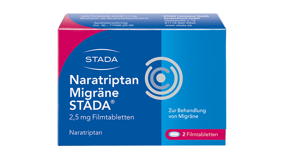 Linderung kann hier Naratriptan Migräne STADA® schaffen. Naratriptan wirkt auf die durch Migräne schmerzhaft erweiterten Blutgefäße verengend und lindert so lokale Schmerzen. Begleitsymptome wie Übelkeit, Licht- oder Lärmempfindlichkeit bessern sich ebenfalls.